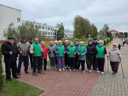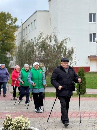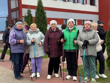 30 сентября 2025 граждане старшего возраста, посещающие отделение дневного пребывания для граждан пожилого возраста государственного учреждения «Воложинский территориальный центр социального обслуживания населения», приняли участие в Республиканском марафоне по скандинавской ходьбе «Шаг к долголетию».