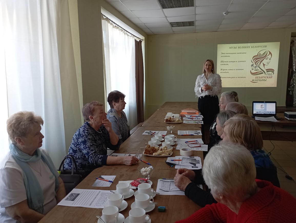 Для более наглядного представления информации была подготовлена мультимедийная презентация «Силуэт за строкой: спутницы вечности…» с использованием архивных фотографий и иллюстраций к произведениям авторов. Также прозвучали лирические стихи белорусских поэтов в прочтении участников клуба. На мероприятии была обозначена важная роль женщины как вдохновительницы и созидательницы, внесшей большой вклад в развитие национальной белорусской культуры.