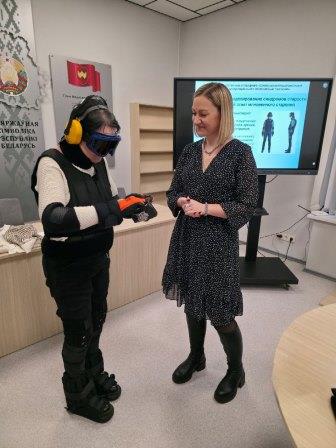 Специалисты отделения дневного пребывания для граждан пожилого возраста ГУ «Воложинский территориальный центр социального обслуживания населения» презентовали костюм имитации старости GERT для сотрудников ГУ «Воложинская центральная районная библиотека» в рамках проекта «Костюм, который меняет жизнь».